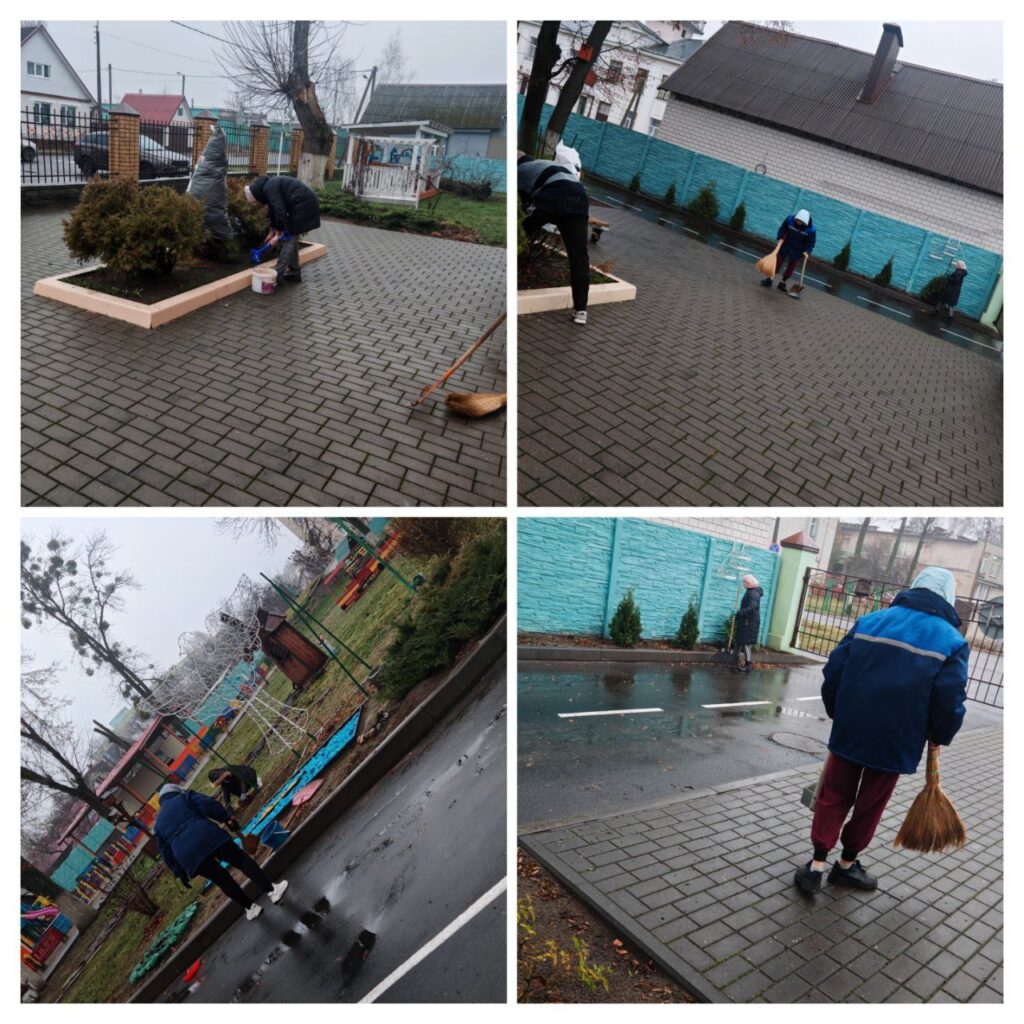 Несмотря на неблагоприятные погодные условия, в ГУО «Детский сад №38 г. Гомеля» прошла акция «Чистый четверг». Сотрудники навели порядок на территории любимого детского сада! 🍃🍁