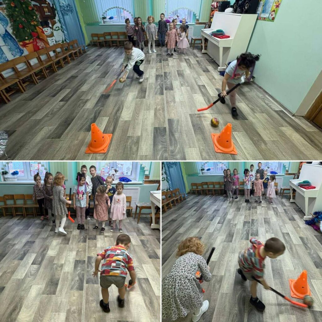 В музыкально-спортивном зале прошло занятие «Кто сильнее?» среди воспитанников разновозрастной группы № 2. Дети с большим азартом соревновались командно. Победила дружба!