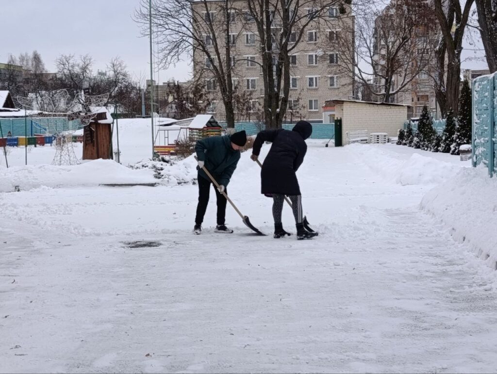 Сотрудники ГУО «Детский сад №38 г. Гомеля» дружно вышли на расчистку снега и проведение противогололедных мероприятий на территории учреждения для обеспечения безопасных условий пребывания в любимом детском саду!