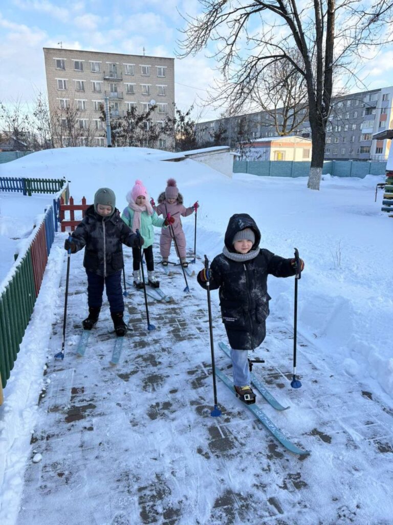 В ГУО «Детский сад № 38 г. Гомеля» прошло занятие «Зимние забавы». Воспитанники учились ходить на лыжах, устраивали гонки, а также лепили снеговиков.